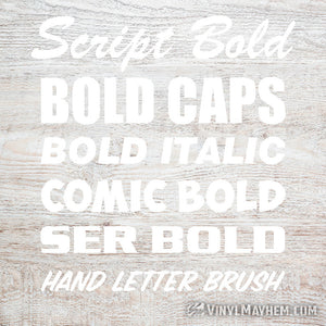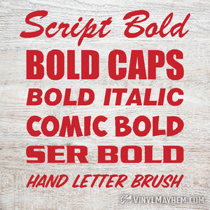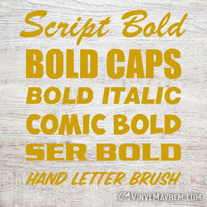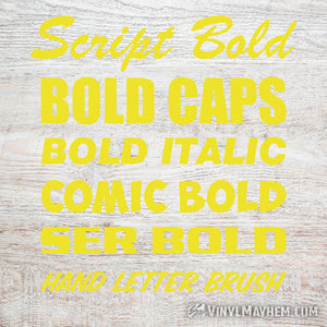 Create a custom vinyl sticker with your own personalized lettering. Enter your own text and choose from an array of fonts to create a unique sticker that reflects your style.