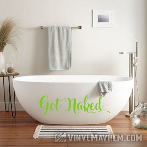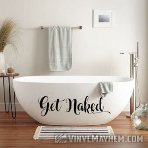 Spice up your bathroom or laundry room with our fun Get Naked vinyl sticker. Your guests will be sure to get a good laugh!