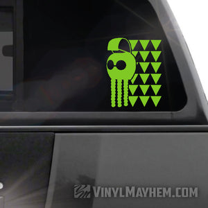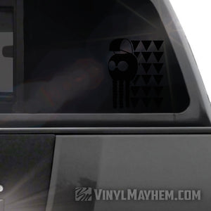 Hawaiian Warrior Helmet Maka Ihe vinyl sticker. The Maka Ihe triangle tribal designs are symbolic of the warrior's spear tips. Bring Hawaiian culture to life on your vehicle or in your home or office with our exclusive design.