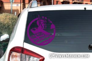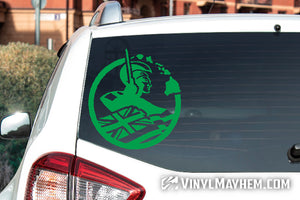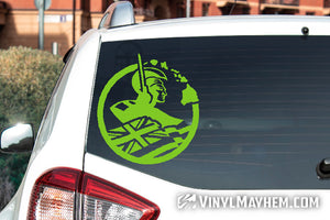 Hawaiian Warrior with islands and state flag vinyl sticker