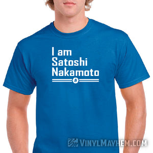 I am Satoshi Nakamoto T-Shirt. Who knows who the real person is. Maybe an alias or maybe.. he is you. This shirt is perfect for anyone who is into Bitcoin or other cryptocurrencies.