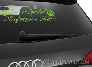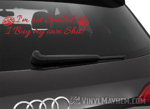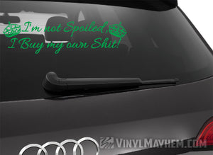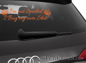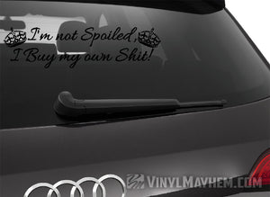 Our I'm Not Spoiled I Buy My Own Shit with crowns sticker design is a Vinyl Mayhem exclusive, created by one of our in-house graphic designers. Its edgy design is sure to give any project a unique and stylish flair. Let your car, laptop, or workspace speak to your individual sense of style and attitude.