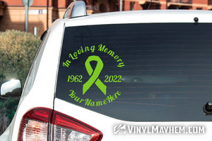 Show your love for family or friends with our In loving Memory awareness ribbon add custom text vinyl sticker. Create your own vinyl sticker by typing your loved ones name and from/to years.