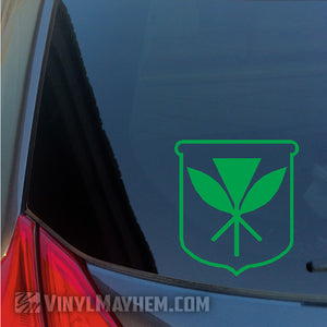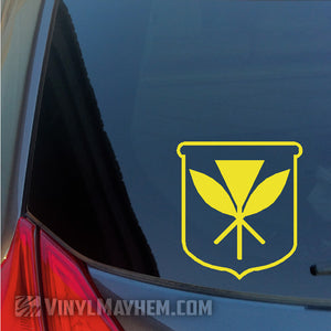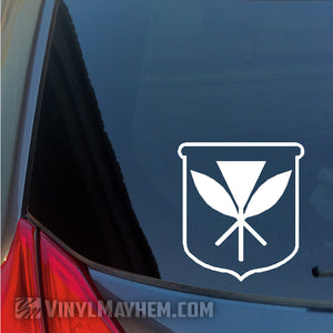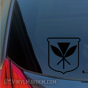 Hawaiian Kanaka Maoli Crest vinyl sticker. Show off your pride for the Hawaiian culture with this beautiful design. It's a unique way to express your personal style. This design was created by one of our in-house graphic designers.