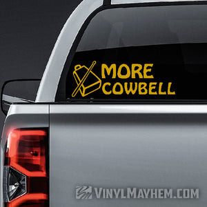 I gotta have More Cowbell! Our More Cowbell vinyl sticker was designed by one of our in-house graphic designers. based on the popular TV show skit and pop culture phrase.