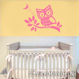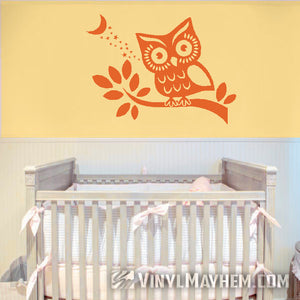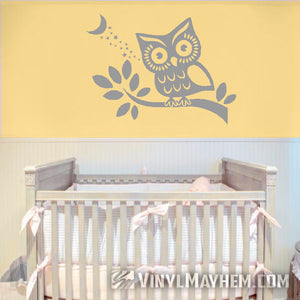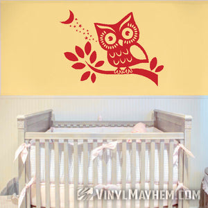 Our Owl on branch with stars and moon vinyl sticker is a unique and eye-catching way to decorate your walls or your favorite item. A Vinyl Mayhem exclusive design created by one of our in-house graphic designers.