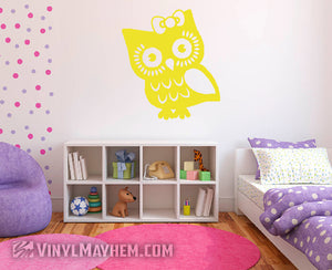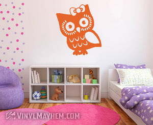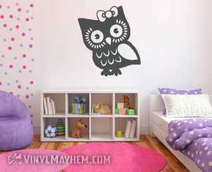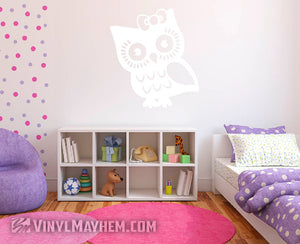 Owl with Bow vinyl sticker. A Vinyl Mayhem exclusive design created by one of our in-house graphic designers. This design is Registered with the United States Copyright Office.