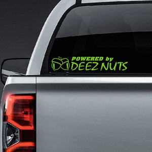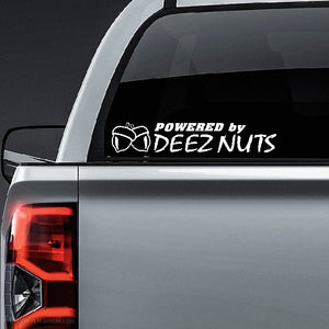 Our Powered By Deez Nuts vinyl sticker is a creative way to show your silly side, and let everyone know where your power comes from!
