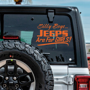 Put a fun and defiant spin on your Jeep with our exclusive Silly Boys Jeeps Are For Girls vinyl sticker. Our eye-catching sticker is perfect for any girl's off-road vehicle.. you'll love taking your Jeep to the next level!