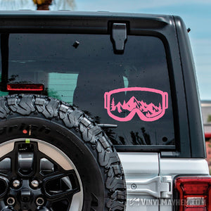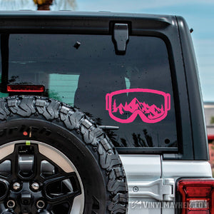Bring the mountain view with you wherever you go with our Ski & Snowboard Goggles Mountains Vinyl Sticker. Featuring a bold goggle outline with a scenic mountain and forest silhouette, this decal captures the essence of adventure and fresh powder days. Whether you’re a skier, snowboarder, or mountain biker, it’s a stylish way to show your love for the slopes year-round!
