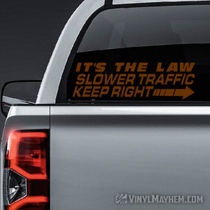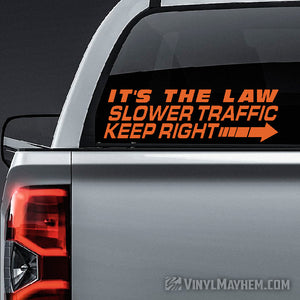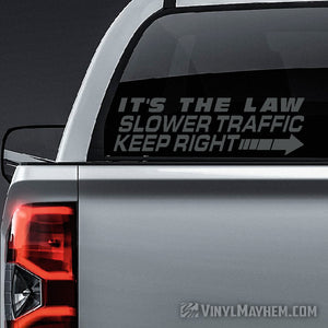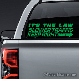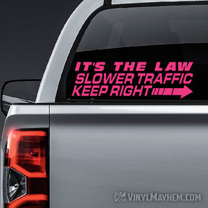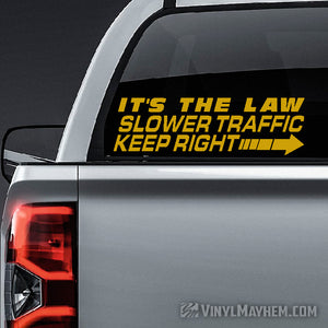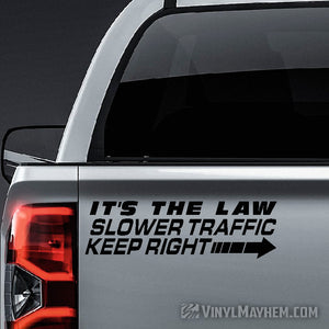 Slower Traffic Keep Right It's The Law vinyl sticker