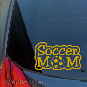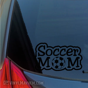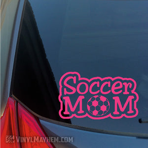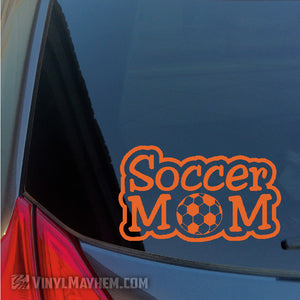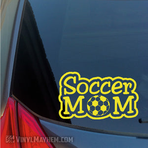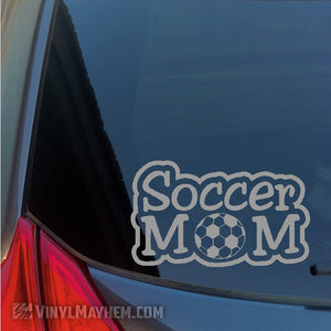 Soccer Mom text outlined vinyl sticker. Bring a bit of style and fun to your car, laptop, or anything else you'd like to personalize with this Soccer Mom sticker. Show off your soccer mom pride with this unique vinyl sticker.