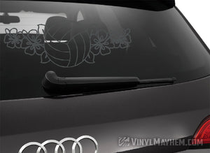Show your Aloha spirit with our Volleyball hibiscus flowers vinyl sticker. Perfect for beach volleyball and adding a touch of paradise to your favorite sport. A Vinyl Mayhem exclusive, created by one of our in-house graphic designers.