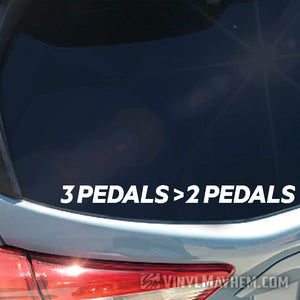 Make a statement with your vehicle with our 3 Pedals greater than 2 Pedals vinyl sticker. Boost its style and proudly display your love of driving a manual transmission!