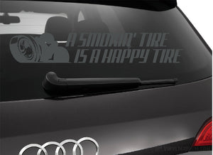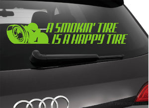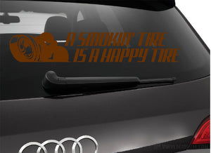 Show your passion for speed with our A Smokin' Tire is a Happy Tire vinyl sticker. Perfect for racing enthusiasts! Let everyone know you’re all about performance and adrenaline with this striking decal.