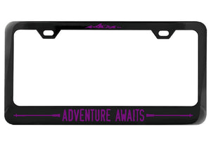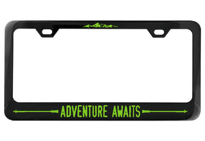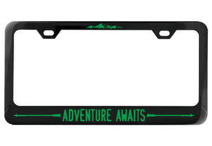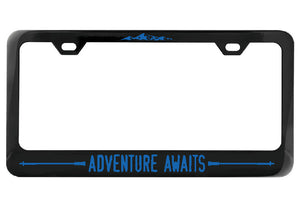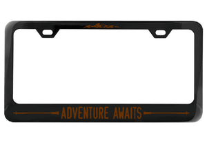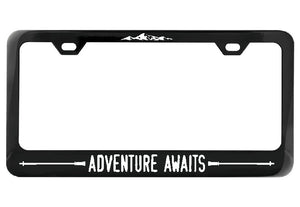 Get ready for your next adventure with our Adventure Awaits Hiking Poles black license plate frame. Embrace the spirit of exploration every time you hit the road and showcase your love for hiking!