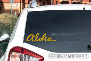 Aloha script with flower vinyl sticker