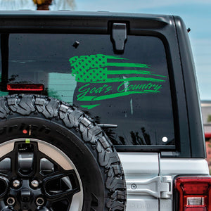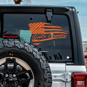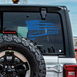 Show your patriotism with this American Flag God's Country distressed waving vinyl sticker. Perfect for car windows, laptops, or any flat surface, this sticker is created with love by one of our in-house graphic designers. Support your country and display your faith in style!
