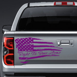 American Flag right to bear arms distressed waving vinyl sticker. A Vinyl Mayhem original design created by one of our in-house graphic designers.