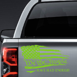 Show your patriotism with this distressed waving American flag sticker. Made of durable vinyl, this waterproof sticker with the words We the People Have Had Enough will proudly express your political views. Perfect for cars, computers, and more.