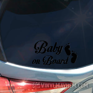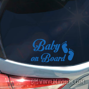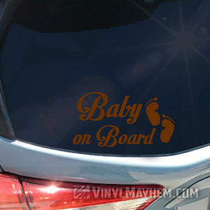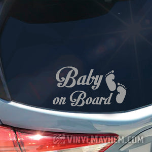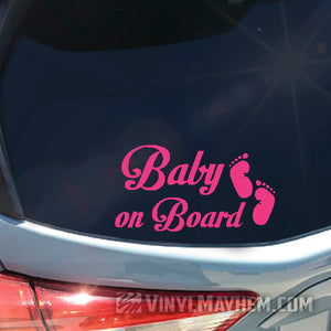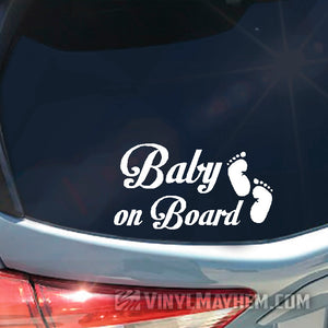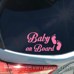 Our Baby on Board with footprints vinyl sticker will easily personalize any your ride. Our cute feet and stylish text is perfect for adding an extra layer while showcasing your style and keeping your family safe.