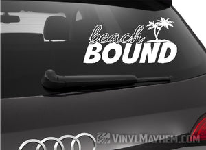Beach Bound with Palm Trees vinyl sticker. This design is a Vinyl Mayhem exclusive, created by one of our in-house graphic designers.