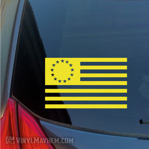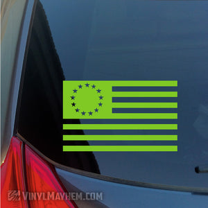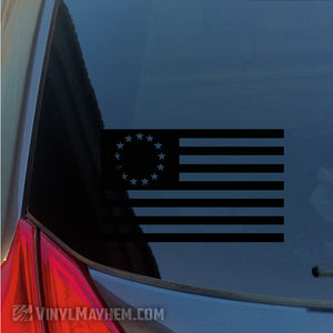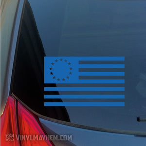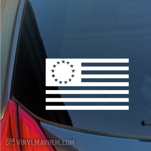 Show off your American pride with this high-quality vinyl sticker featuring the classic Betsy Ross American Flag design. Perfect for car windows, laptops and more.