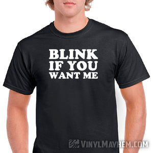Blink If You Want Me T-Shirt. This playful tee will show the world your sense of humor without having to say a word. Get ready to make the conversation pop!