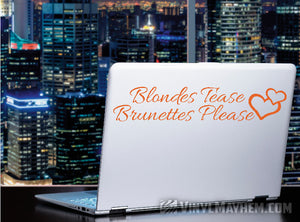 This Blondes Tease Brunettes Please sticker design is a Vinyl Mayhem exclusive, created by one of our in-house graphic designers.