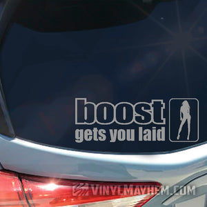 This Boost Gets You Laid sticker is our version of a popular design in the import car scene.