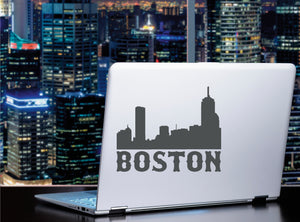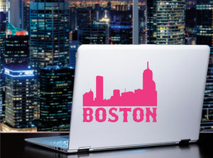 Our Boston Massachusetts cityscape vinyl sticker made with a traditional baseball style font. Featuring the skyline of the city, It's the perfect way to show off your love for Boston. A Vinyl Mayhem exclusive, created by one of our in-house graphic designers.