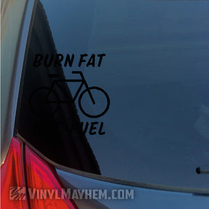 Burn fat not fuel bicycle sticker. A great sticker to promote fitness, conservation, and the love of riding bikes. A Vinyl Mayhem exclusive, created by one of our in-house graphic designers.