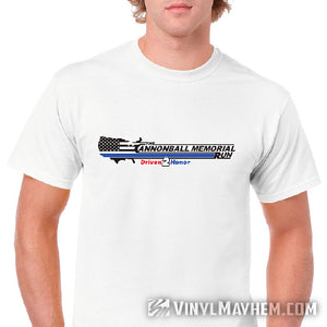 Cannonball Memorial Run T-Shirt. Show your support for this great organization. Proceeds from this shirt help support the families of fallen officers.