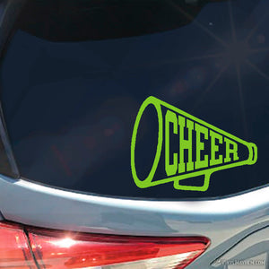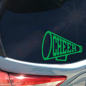 Our Cheer Megaphone varsity text vinyl sticker is great for cheerleaders and cheer families. Show your pride and support with this stylish and long-lasting decal!