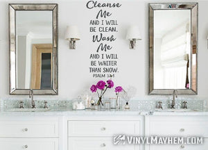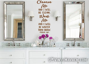 Add a touch of inspiration to your space with our Cleanse me and I will be clean, Wash me and I will be whiter than snow vinyl sticker. It offers a meaningful message that encourages renewal and purity, and will brighten your environment while reminding you of fresh starts every day.