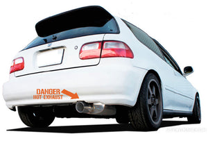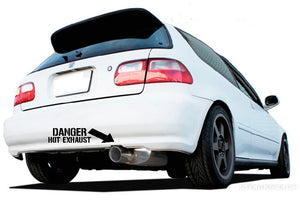 Our Danger Hot Exhaust with Arrow vinyl sticker is perfect for all race car and bumper enthusiasts. It's sure to make a statement with its iconic design and vibrant colors.