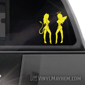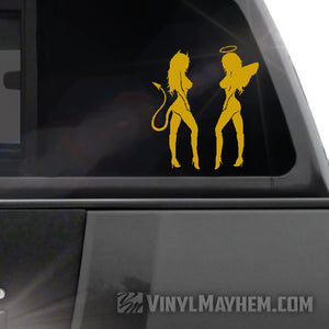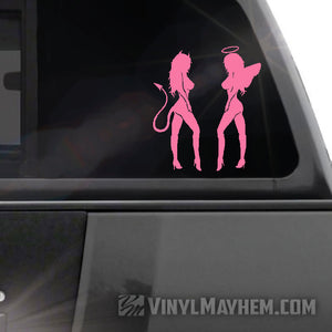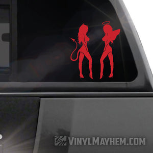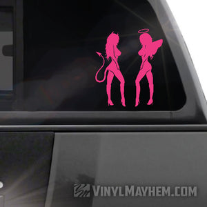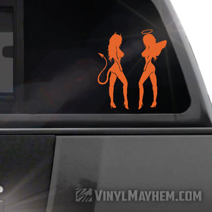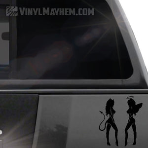 Our Devil Angel Girls are the perfect mix of good and evil, ready to spruce up any surface with their eye-catching and stylish vinyl sticker. Made in a pair, facing each other as shown.