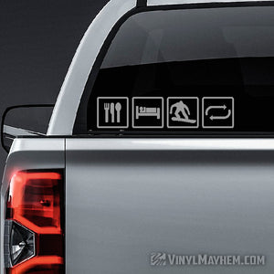 Our Eat Sleep Snowboard Repeat vinyl sticker is perfect for anyone who loves to ride snowboards. A Vinyl Mayhem exclusive design created by one of our in-house graphic designers.