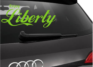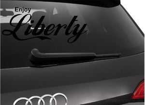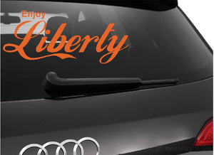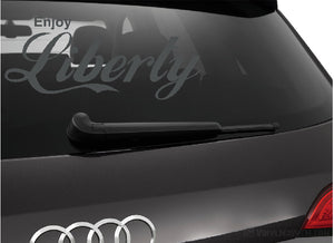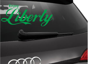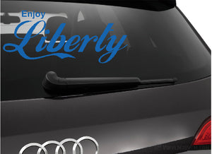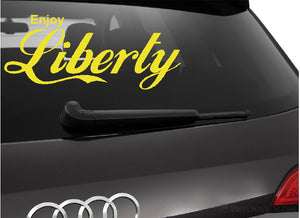 Express your patriotism with our exclusive Enjoy Liberty vinyl sticker. Created by one of our in-house graphic designers, it's perfect for cars, windows, laptops, or any flat surface. Show your love of freedom and enjoy the view!