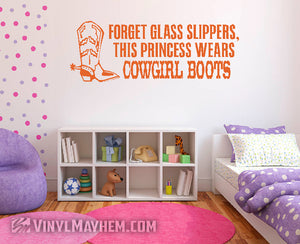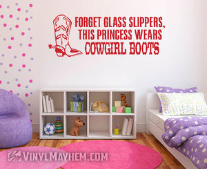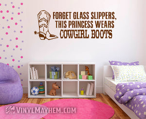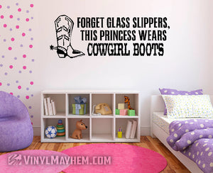 Our Forget Glass Slippers This Princess Wears Cowgirl Boots vinyl sticker is a fun way to show off your style. Stand out and make a statement with our original Vinyl Mayhem design!
