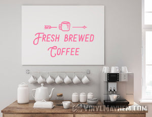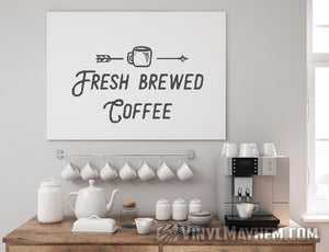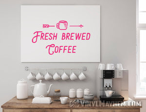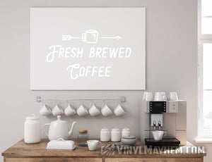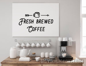 Fresh Brewed Coffee vinyl sticker. Great for coffee bars and kitchens.