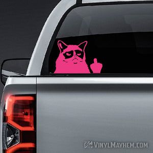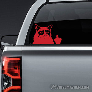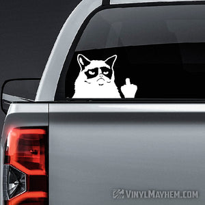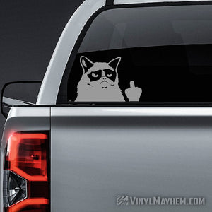 Grumpy Cat Flipping Off vinyl sticker. A funny version of the famous meme cats.