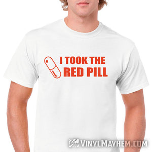 Make a bold fashion statement that shows everyone you're "in the know" with our I Took the Red Pill T-Shirt! It's the perfect way to show off your savvy and celebrate your intellectual curiosity. Welcome to the Matrix!