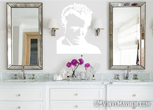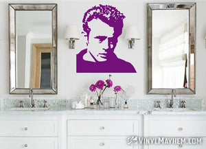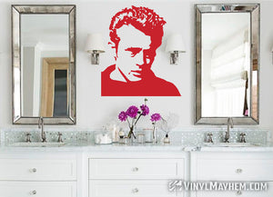 James Dean wearing sweater vinyl sticker. Perfect for any fan of James Dean.