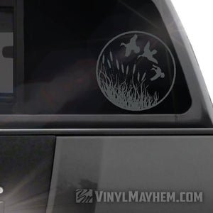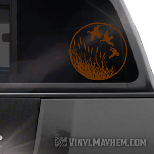 Ducks flying wildlife scene vinyl sticker.