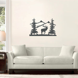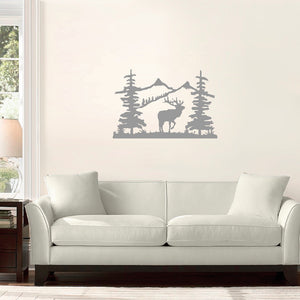 Wildlife Mountain Scene with Elk vinyl sticker. A great wildlife outdoors scene design.