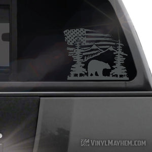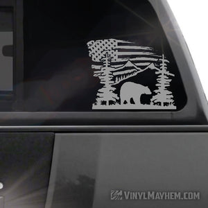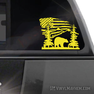 Mountain Scene with Bear and American Flag vinyl sticker