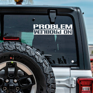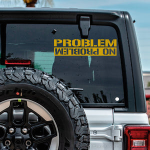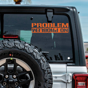Show your love of off-roading with this durable Problem No Problem vinyl sticker. Perfect for Jeeps and other four-wheel drives, this sticker is sure to make your vehicle stand out. Express your adventurous spirit the right way!