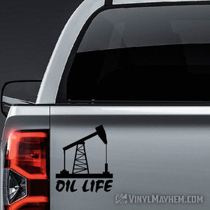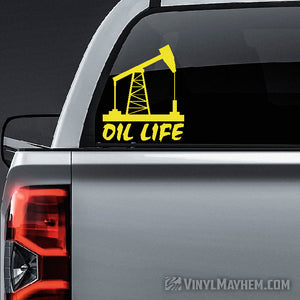 Show your support for oil workers with our Oil Life vinyl sticker. Perfect for vehicles, windows, walls, and more, this sticker will make a great addition to any collection. Durable and long-lasting, it will show off your pride in oil workers for years.