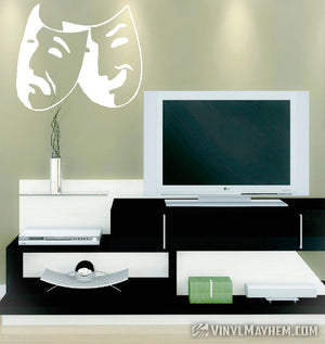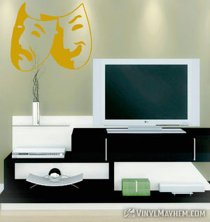 Our theater masks vinyl sticker features two iconic masks representing comedy and tragedy. Perfect for theater-lovers, this classic design is an ideal addition to media rooms or anywhere you would like to put it.